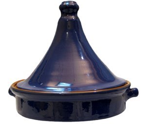 An authentic tajine for use in Moroccan cooking consisting of a round base dish and a conical lid The tall lid traps steam and condensation and returns it to the food keeping the food moist Tajines are typically used for making stews such as chicken with olives and preserved lemons or lamb wit