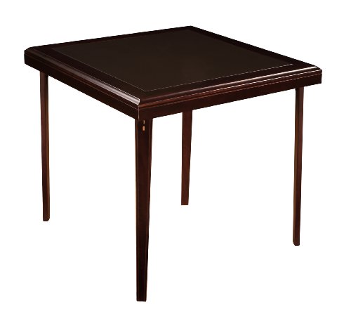 The look and feel of fine furniture with space saving convenience this 32 square folding table features a rich Espresso Finish and a wipe clean dark brown vinyl inset Use for games crafts dining or as a buffet Rich Espresso Finish Dark Brown Vinyl Padded Seat Folds for easy set up and st