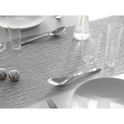 Chilewich 0118-LATT Often likened to crystal and jewels this naturally irregular open weave utilizes translucent and proprietary yarns which shimmer in any setting Features -Made from vinyl -Tte--tte shape -Dimensions 19 W x 55 D Color White